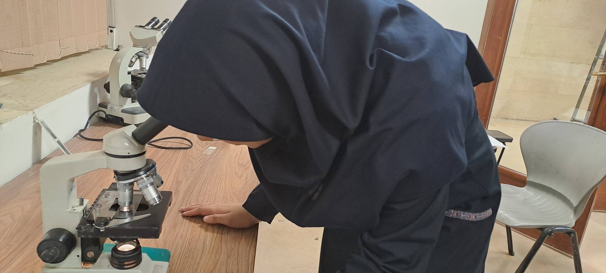 در این جلسه از درس آزمایشگاه دانش آموزان با نحوه کار با میکروسکوپ آشنا شدند. آنها برای آشنایی با میکروسکوپ، نمونه میکروسکوپی از انگل تنیاسولیوم را مشاهده کردند.همچنین یکی از دانش آموزان به صورت داوطلبانه نمونه میکروسکوپی از سلولی های خون خود تهیه کرد و آن را زیر میکروسکوپ مشاهده کردند.