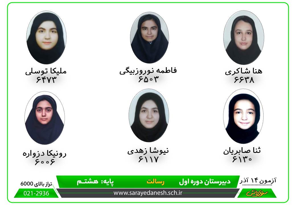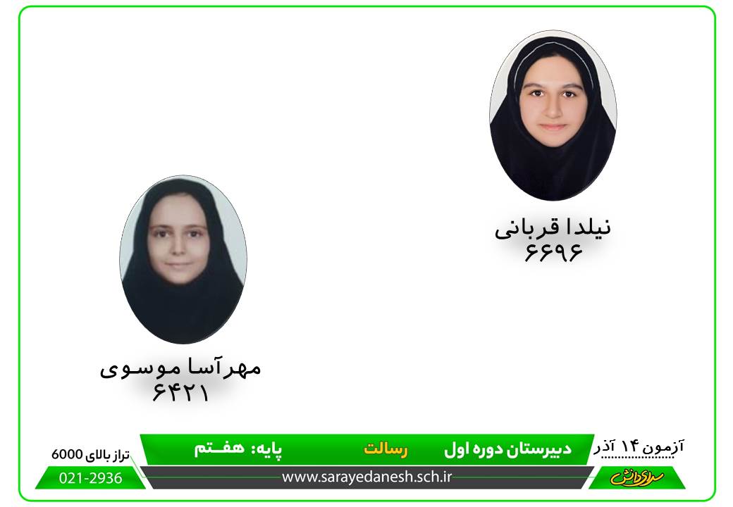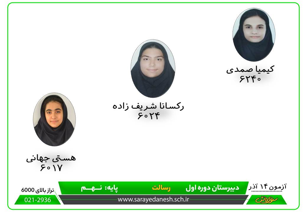 برترین های آزمون 14 آذر دوره اول سرای دانش رسالت