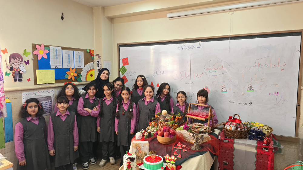 به مناسبت جشن یلدا، مدرسه با برگزاری جشنی باشکوه و پرنشاط، فضایی گرم و صمیمی برای دانشآموزان فراهم کرد. این مراسم با حضور پرانرژی بچهها و همراهی معلمان، حالوهوای سنتی و دلنشینی به مدرسه بخشید.