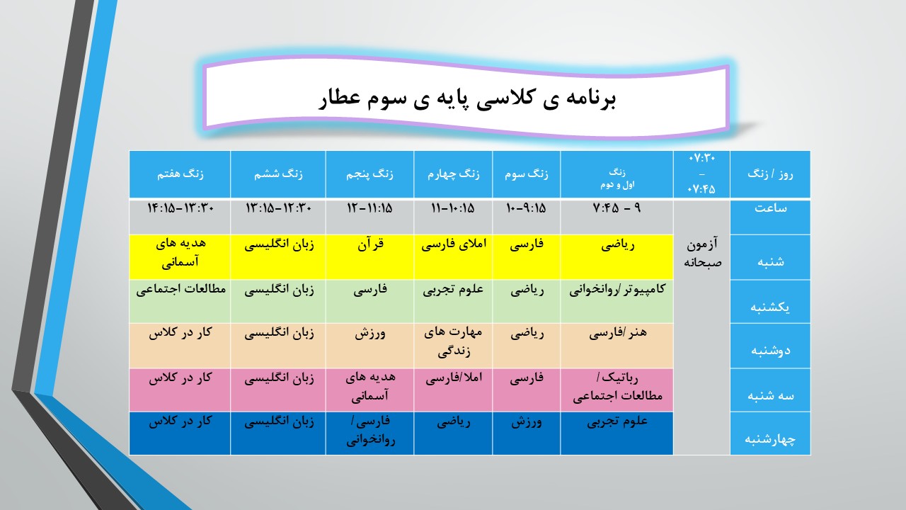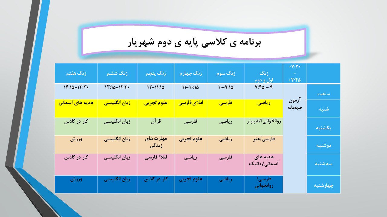 برنامه هفتگی دبستان دوره اول سرای دانش (واحد مرزداران)