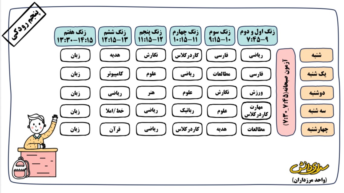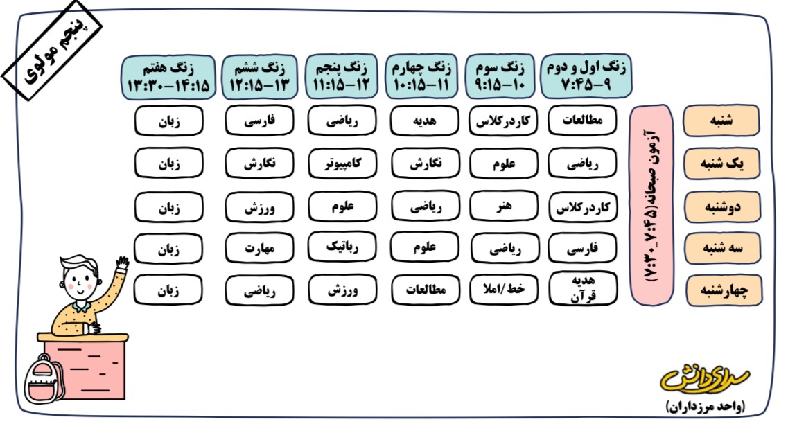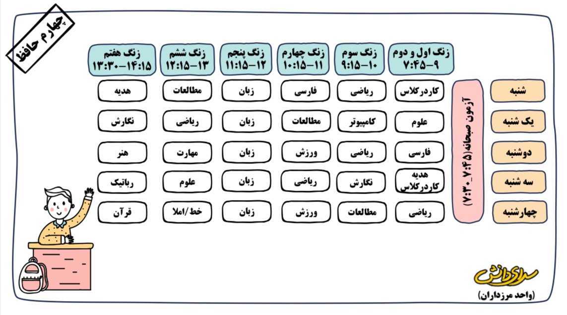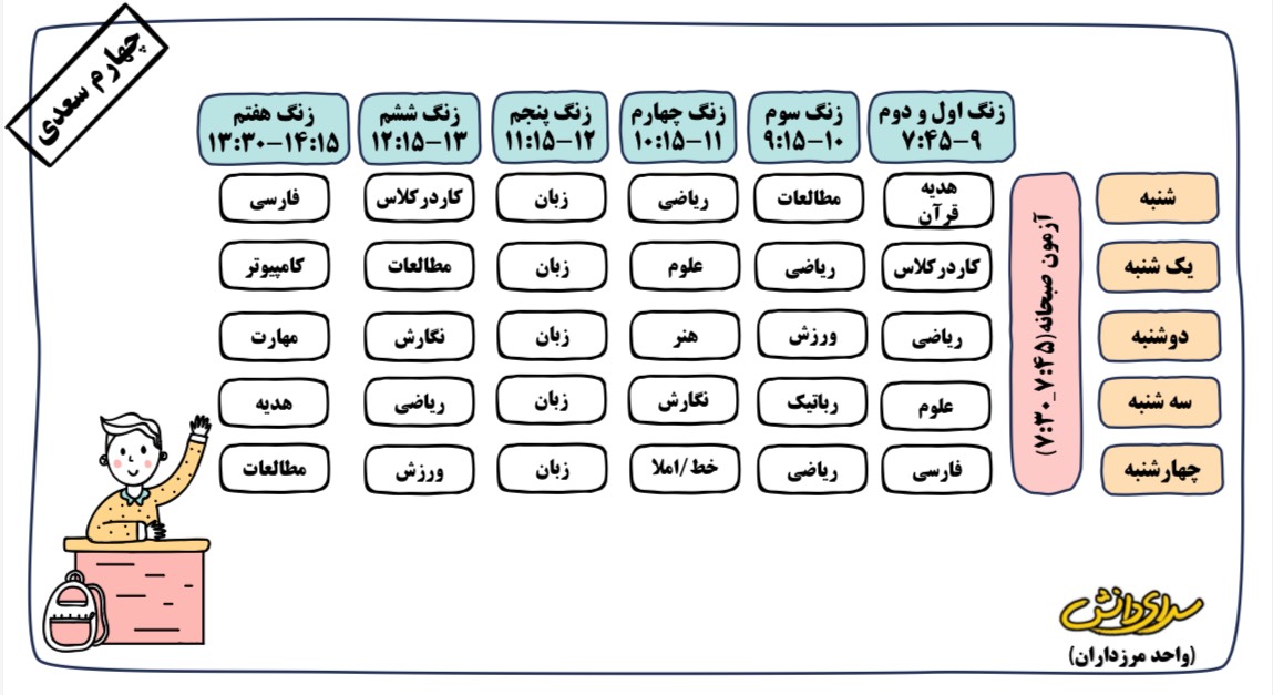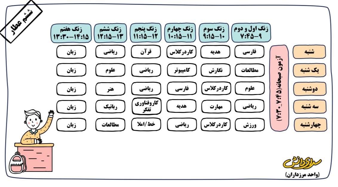برنامه هفتگی دبستان دوره دوم سرای دانش (واحد مرزداران)