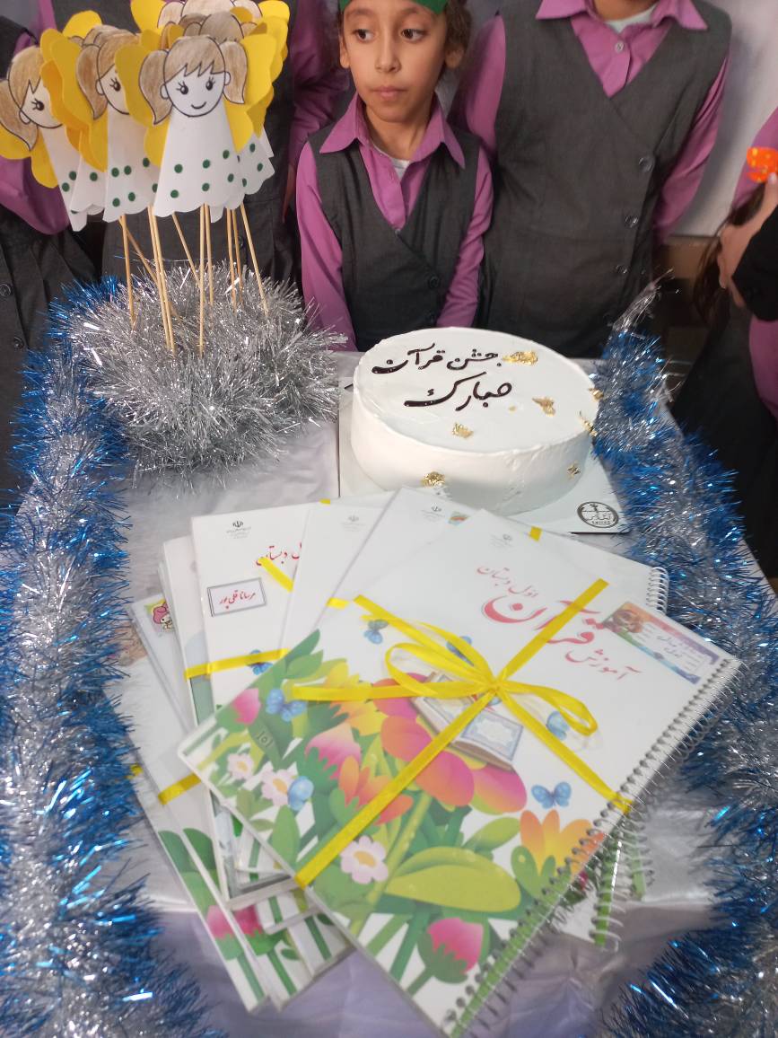 فضای کلاس با تزیینات زیبا، آیات قرآنی و نمادهای معنوی آراسته شده بود و دانشآموزان با لباسهای مرتب و چهرههایی پر از شوق، در این جشن شرکت کردند. برنامه با تلاوت آیاتی از قرآن کریم آغاز شد و سپس دانشآموزان با اجرای سرودهای قرآنی و شعرهای کودکانه، عشق و احترام خود را به این کتاب مقدس ابراز کردند.