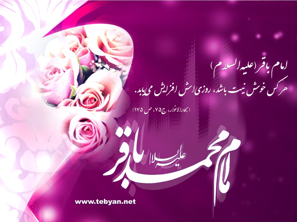 امام محمد باقر (ع) پیشوای پنجم شیعیان، روز جمعه اول ما رجب (طبق برخی روایات روز جمعه سوم ماه صفر)، سال 57 هجری در مدینه دیده به جهان گشود. دهها سال پیش از تولد وی، نیای بزرگوارش پیامبر اکرم (ص) نام خود «محمد» را برای وی برگزیده و او را به لقب «باقر» ملقب فرمود.