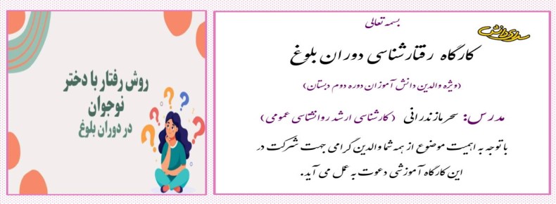 برگزاری کارگاه مشاوره ای با موضوع رفتار شناسی دوران بلوغ - دبستان دختر...