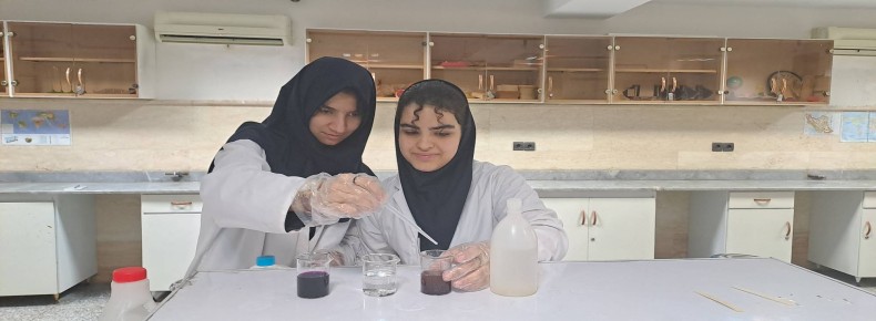 انجام آزمایش مقایسه رنگ بری آب اکسیژنه و سفید کننده دانش آموزان پایه دهم سرای دانش واحد رس...